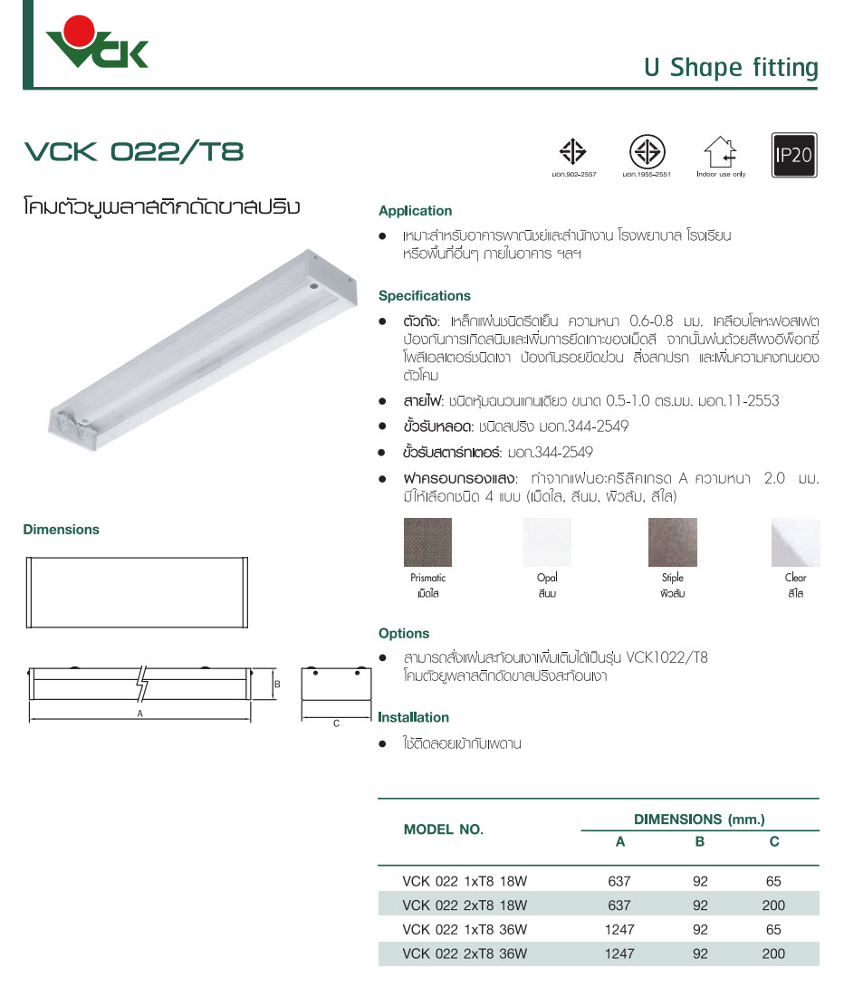 โคมไฟตัวยูฝาครอบสีใส T8 VCK 022CC/220 ( 2x18W )